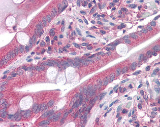 Anti-GOLM1 / GOLPH2 antibody IHC of human small intestine. |
