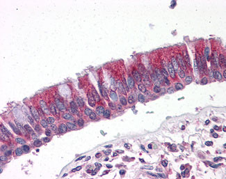Anti-CCT2 antibody IHC of human lung, respiratory epithelium. |