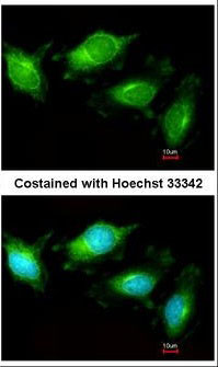 Immunofluorescence of methanol-fixed HeLa, using TLR3 antibody at 1:200 dilution.