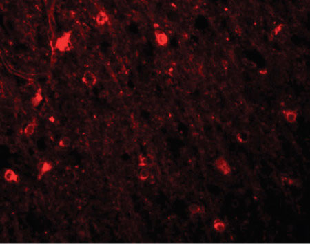 Immunofluorescence of SIPA1L1 in human brain tissue with SIPA1L1 antibody at 20 ug/ml. |