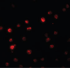 Immunofluorescence of PPAPDC2 in Raji cells with PPAPDC2 antibody at 20 ug/ml. |