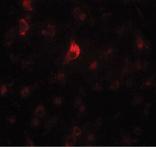 Immunofluorescence of PICALM in human brain tissue with PICALM antibody at 20 ug/ml. |