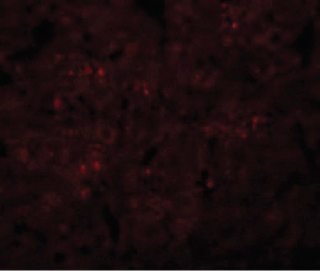 Immunofluorescence of SYNGR3 in Rat Brain cells with SYNGR3 antibody at 20 ug/ml.