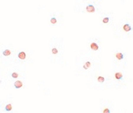 Immunocytochemistry of LRCC19 in K562 cells with LRCC19 antibody at 2.5 ug/ml.