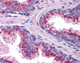 Anti-SLC37A2 antibody IHC of human prostate. |