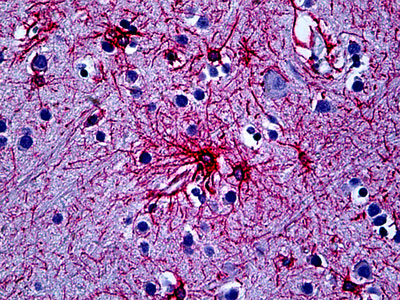Anti-GFAP antibody IHC of human brain, cortex. |