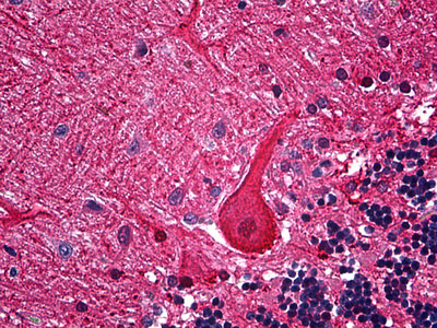 Anti-CALB1 / Calbindin antibody IHC of human brain, cerebellum. |