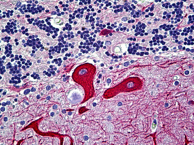 Anti-TUBB3 / Beta III Tubulin antibody IHC of human brain, cerebellum. |