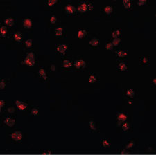 Immunocytochemistry of KPNA3 in HeLa cells with KPNA3 antibody at 10 ug/ml.