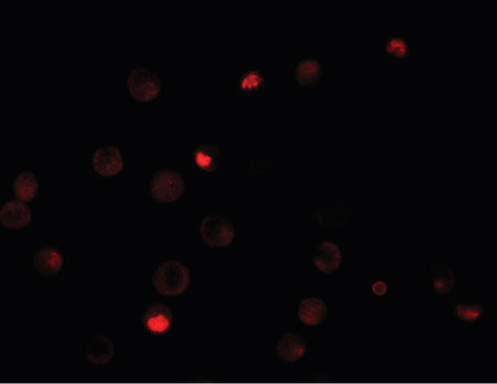 Immunocytochemistry of KPNA4 in HeLa cells with KPNA4 antibody at 2.5 ug/ml.