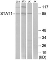 Western blot of extracts from 293/3T3/Jurkat, using STAT1 Antibody. |