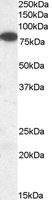 Staining (0.05 ug/ml) of human brain cerebellum lysate (RIPA buffer, 35 ug total protein per lane). |