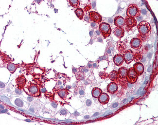Anti-Serum Amyloid P antibody IHC of human testis. |