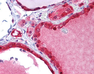 Anti-PRDX1 / Peroxiredoxin 1 antibody IHC of human thyroid. |