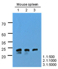 Extracts of Mouse spleen (35 ug) were resolved by SDS-PAGE, transferred to PVDF membrane and...