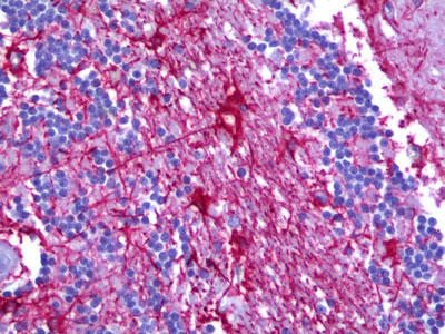 Anti-GFAP antibody IHC of human brain, astrocytes. |