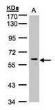Sample. A: 30g of HeLa S3 whole cell lysate. 7.5% SDS PAGE. MAPK15 antibody diluted at 1:1000