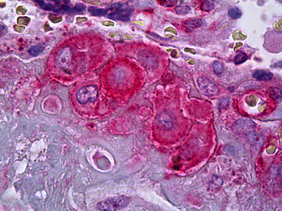 Anti-SERPINE1 / PAI-1 antibody IHC of human placenta, decidual cells. |