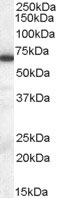 Antibody staining (0.3 ug/ml) of Human Tonsil lysate (RIPA buffer, 35 ug total protein per lane). |