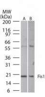 Western blot of Fis1 in A) HeLa and B) NIH 3T3 cell lysate using antibody at 1:1000 dilution. |
