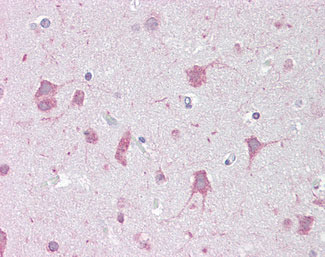 Anti-GABRA1 antibody IHC of human brain, cortex. |