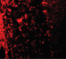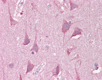 Immunofluorescence of LRRTM2 in human brain tissue with LRRTM2 antibody at 20 ug/ml.