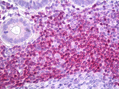 Anti-BCL2 / Bcl-2 antibody IHC of human colon, lymphocytes. |