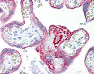 Anti-KRT7 / Cytokeratin 7 antibody IHC of human placenta. |