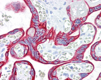 Anti-KRT7 / Cytokeratin 7 antibody IHC of human placenta. |