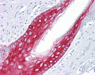 Reacts with cytokeratin 17 in basal layers of pseudo-stratified and transitional epithelia.