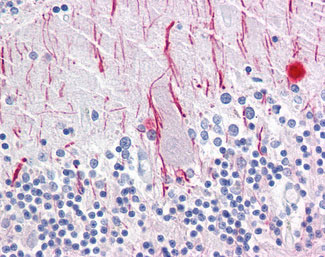 Anti-NEFH antibody IHC of human brain, cerebellum. |