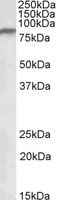 NDUFS1 antibody (0.3 ug/ml) staining of Human Heart lysate (35 ug protein/ml in RIPA buffer).
