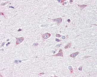 Anti-GOLGA6 antibody IHC of human brain, cortex. |