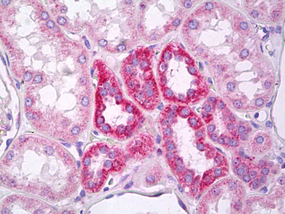 Anti-MARK2 antibody IHC of human kidney, tubules. |