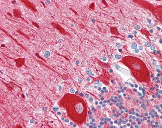 Anti-TUBB3 / Beta III Tubulin antibody IHC of human brain, cerebellum. |