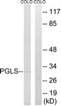 Western blot of extracts from COLO cells, using PGLS Antibody. |