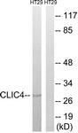 Western blot of extracts from HT-29 cells, using CLIC4 Antibody.