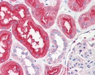 Anti-SLC6A3 / Dopamine Transporter antibody IHC of human kidney. |