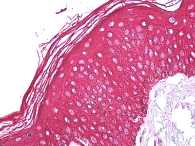 Anti-Cytokeratin 1 / Keratin 1 antibody IHC of human skin. |