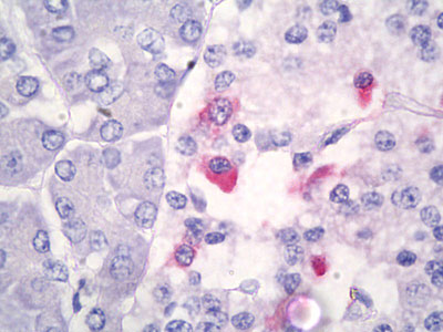 Anti-Somatostatin antibody IHC of human pancreas. |