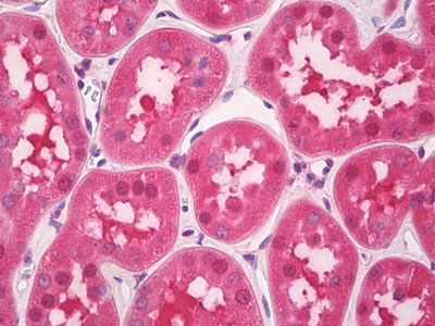 Anti-TLR3 antibody IHC of human kidney, tubules. |