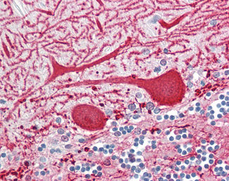 Anti-GBP4 / Mpa2 antibody IHC of human brain, cerebellum. |