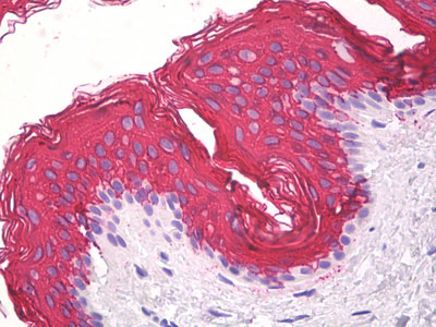 Anti-Keratin 10 / Cytokeratin 10 antibody IHC of human skin, epidermis. |