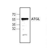 The antibody recognizes 54 kD ATGL in samples from human and mouse origins. Reactivity to other species has not been tested.