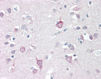 Anti-AP3B2 antibody IHC staining of human brain, cortex.