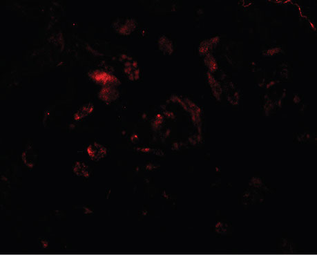Immunofluorescence of VAMP7 in human lung tissue with VAMP7 antibody at 20 ug/ml. |
