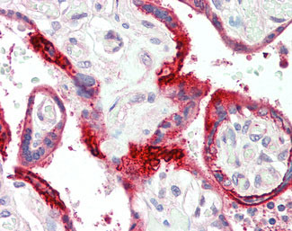 Anti-C11orf2 / Fat-Free antibody IHC staining of human placenta.