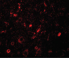 Immunofluorescence of SGSM1 in human brain tissue with SGSM1 antibody at 20 ug/ml.