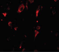 Immunofluorescence of SGSM2 in human brain tissue with SGSM2 antibody at 20 ug/ml. |