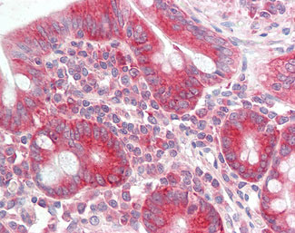Anti-ATG18 / WIPI1 antibody IHC staining of human small intestine.